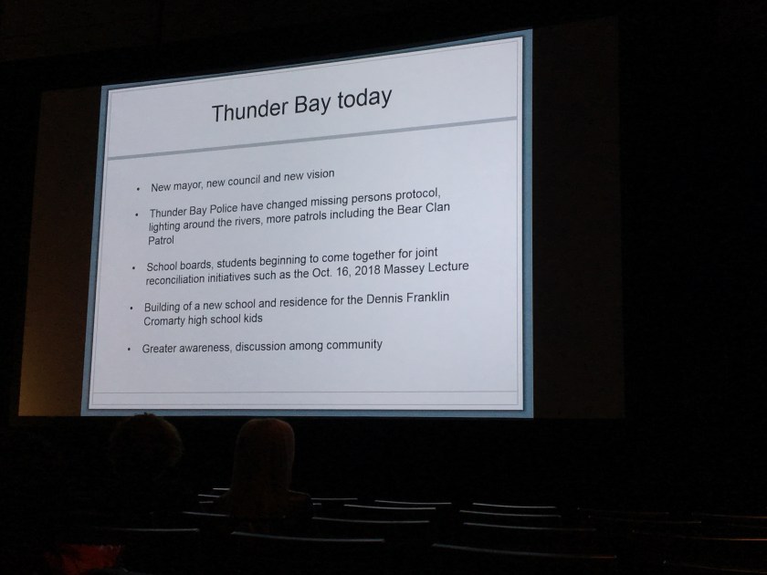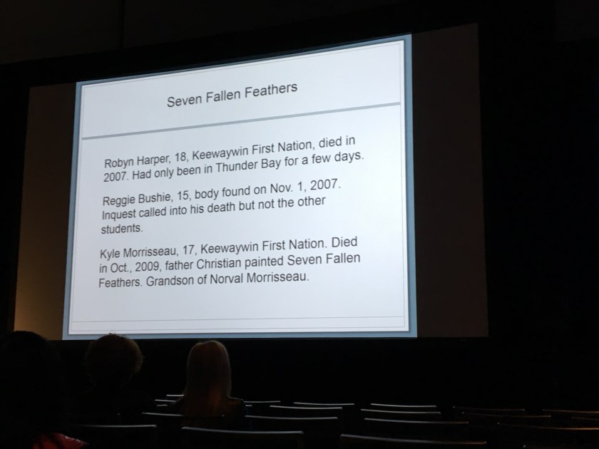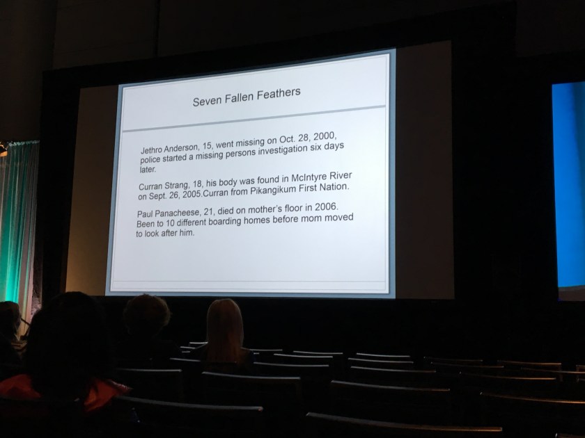 Thank you Tanya for sharing the story of the seven fallen feathers who went missing in Thunder Bay between 2000 to 2011 at the Health Quality Transformation Conference today. Thank you for sharing the words of Pearl on her last conversation with her brother Chanie Wenjack before he boarded the plane to Cecilia Jeffrey Indian Residential School in 1966 and went missing after running away a month later. Thank you for sharing the stories of inequality and inequity to the indigenous communities in Northern Ontario. I am thankful I was able to experience this incredibly powerful and moving speech. It moved me to tears. Every Canadian should add Seven Fallen Feathers to their reading list.